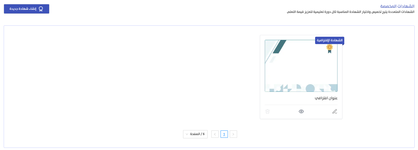 توفر المنصة أداة متقدمة لتخصيص الشهادات، مما يسمح بتعديل التصميم والمحتوى لتتناسب مع هوية مؤسستك التعليمية. لتخصيص تصميم الشهادات، يرجى اتباع الخطوات التالية: توجه إلى قسم "الشهادات" تحت قسم إعدادات عامة واضغط على "تخصيص الشهادات". حدد قالبًا جاهزًا ...
