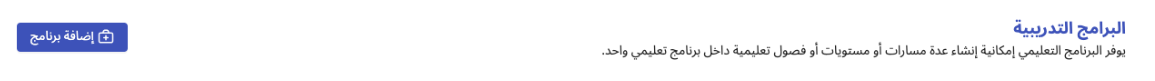 إضافة برنامج تدريبي جديد: في أعلى الصفحة، اضغط على زر "إضافة برنامج" باللون الأزرق والموجود على اليسار، بجانبه أيقونة الحقيبة.