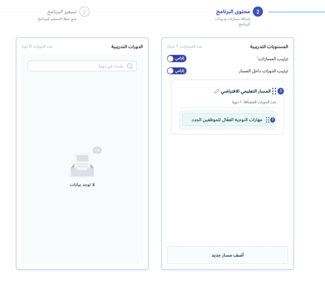 ثانيا: إضافة محتوى البرنامج (المسارات والدورات)