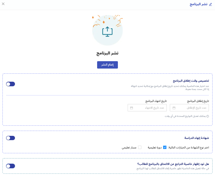 نشر البرنامج | يجعل البرنامج متاحًا فورًا على المنصة ليستطيع الطلاب التفاعل معه |