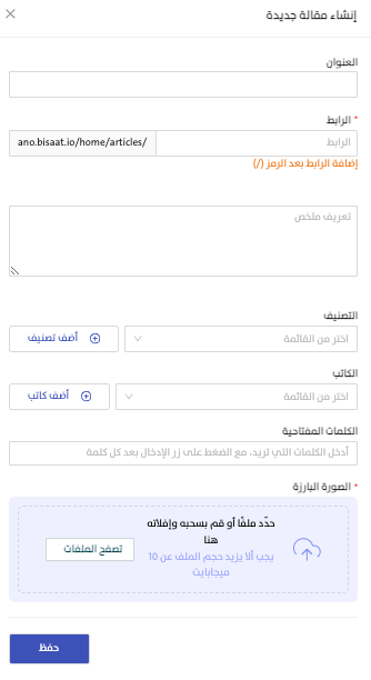 الصورة البارزة: قم برفع صورة تمثل المقالة لتظهر في الصفحة الرئيسية وقسم المقالات.
