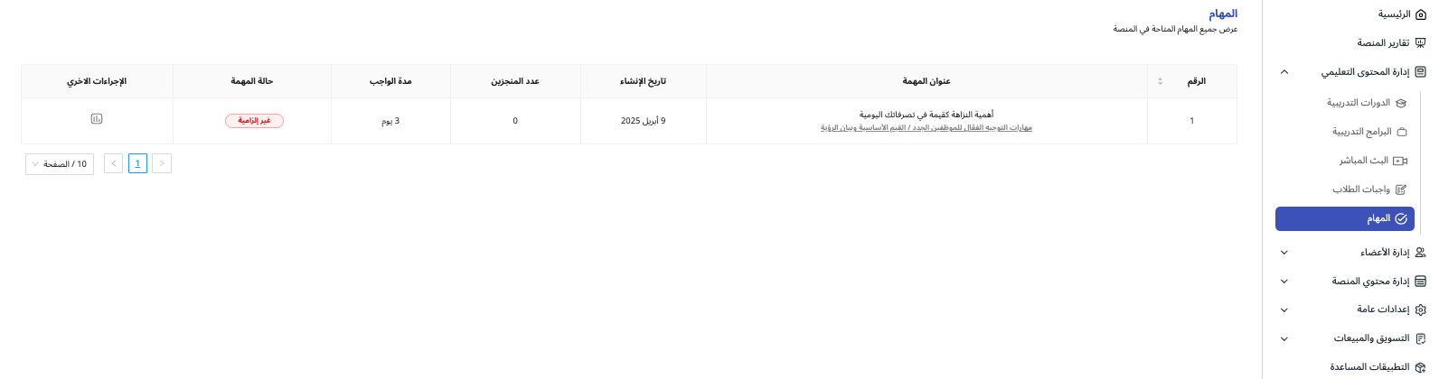 3. تُعرض جميع المهام في جدول منظم يحتوي على الأعمدة التالية: