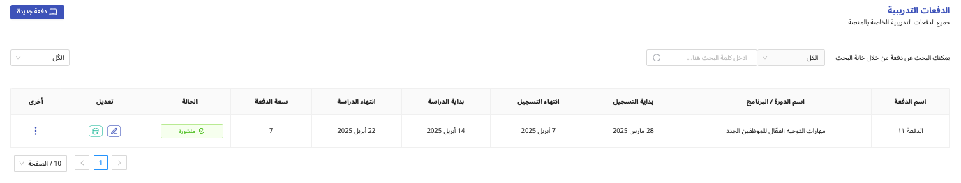 - انتقل إلى الدفعات التدريبية تحت قسم إدارة المحتوى التعليمي من القائمة الرئيسية.