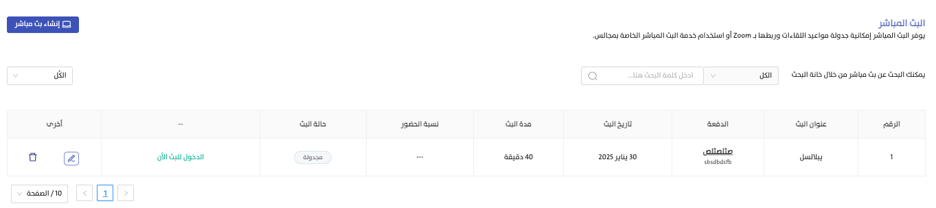 يسمح هذا القسم بإدارة الجلسات المجدولة، سواء بالتعديل أو الحذف، وفقًا للخطوات التالية: