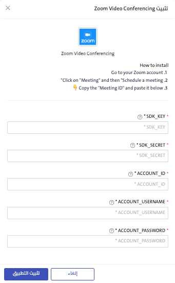 ربط أداة الاجتماعات Zoom