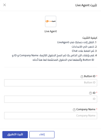 4. أدخل بيانات حسابك على Live Agent، ثم احفظ التعديلات.